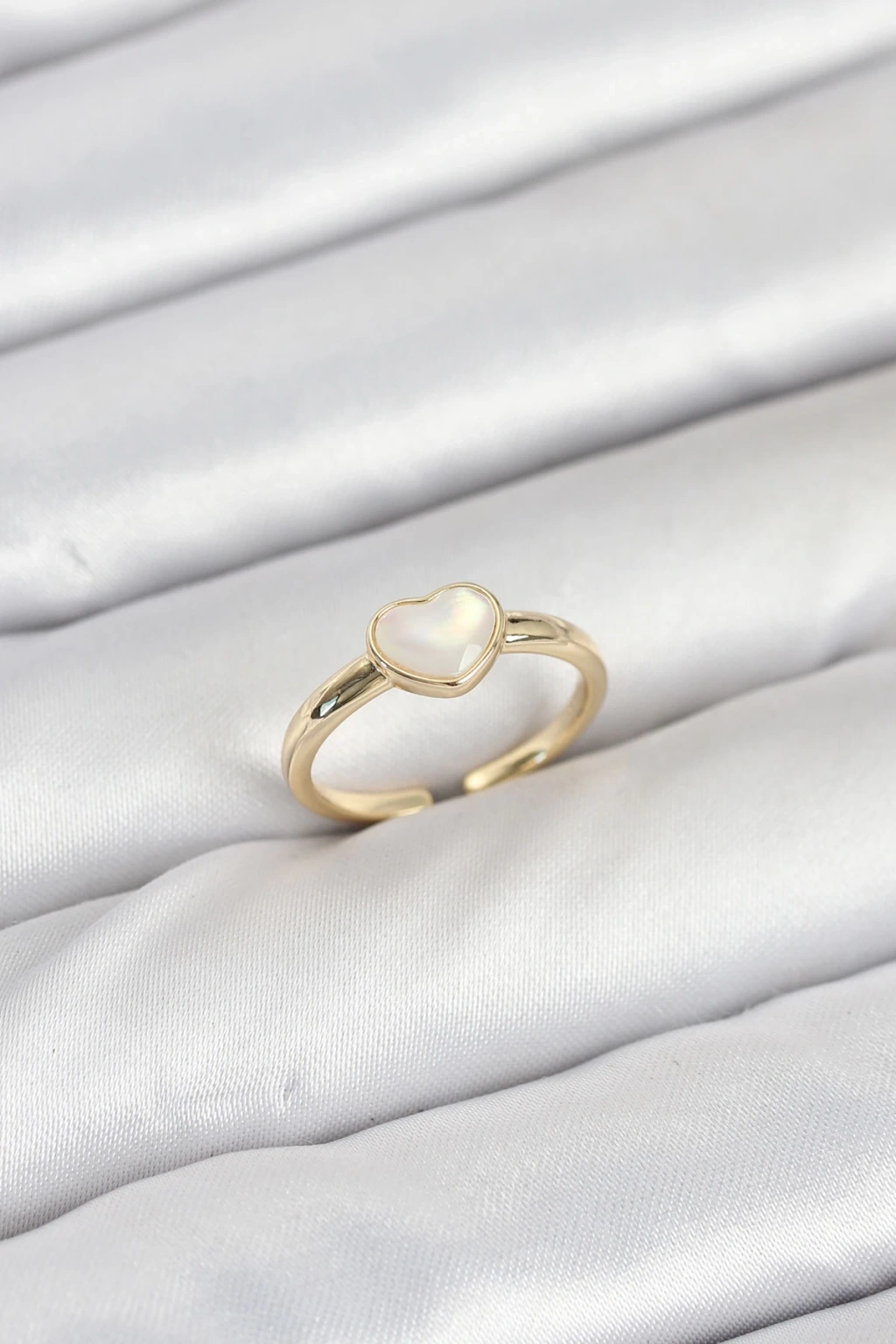 Pirinç Gümüş Renk Kalpli Kadın Yüzük