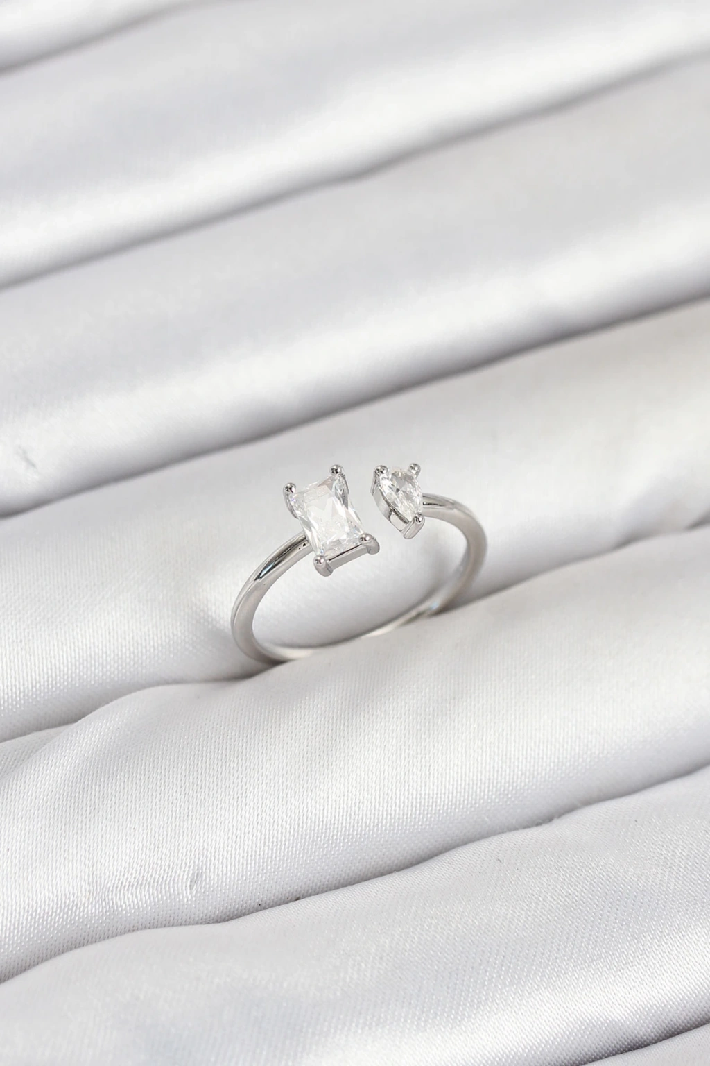 Pirinç Gümüş Renk Kemik Model Zirkon Taşlı Kadın Yüzük