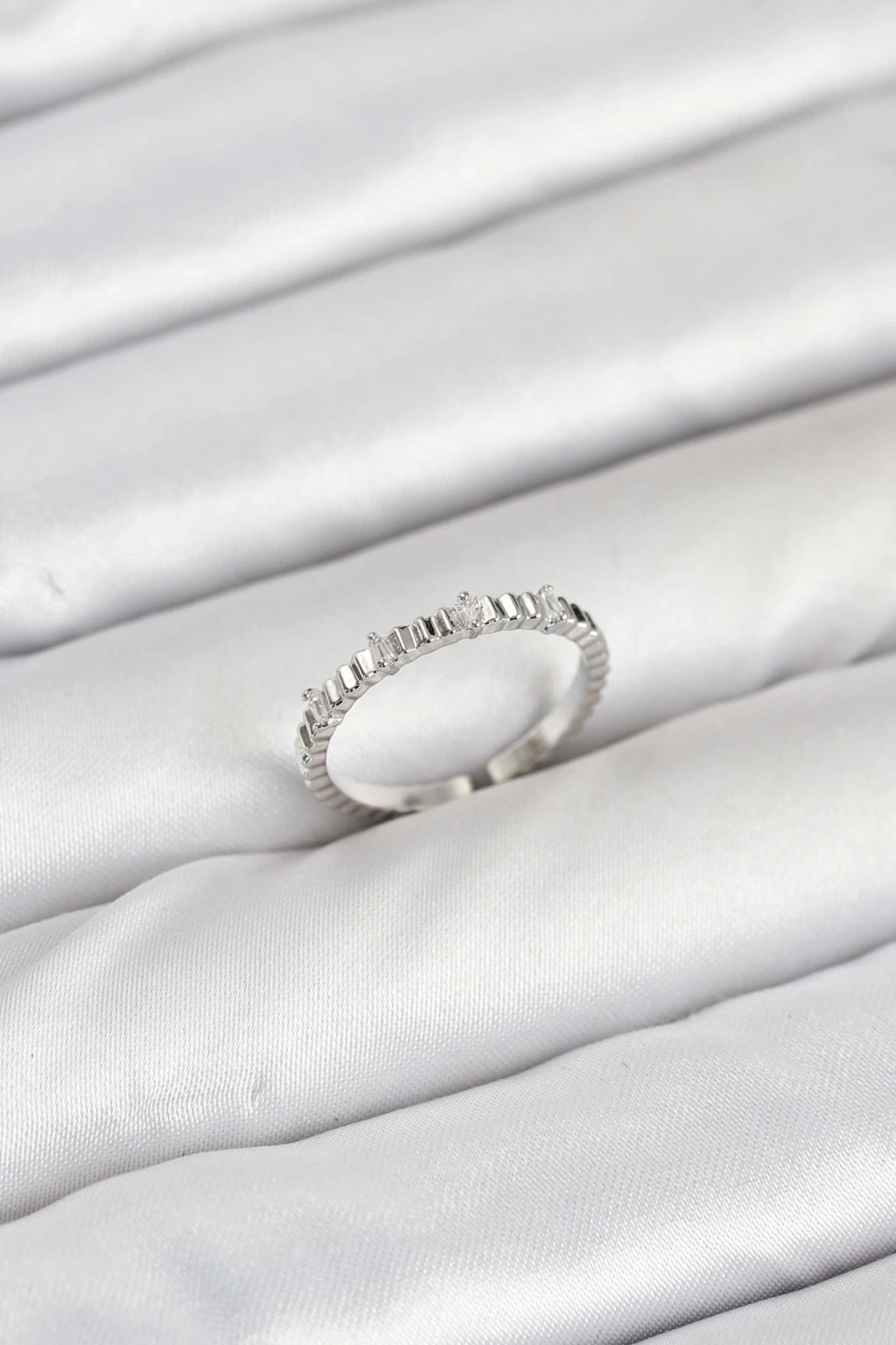 Pirinç Gümüş Renk Kemik Model Zirkon Taşlı Kadın Yüzük
